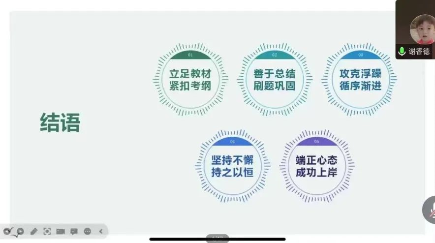 会议最后,谢锦权老师总结发言。他从“提升专业能力,继续发展深造”“获得更好的职业发展前景”“考研考公考事业编更有优势”等方面强调了普通专升本对于大专毕业生的重要性;并鼓励20级同学一旦确定了升本目标,就一定要“咬定青山不放松”认真备考、笃定前行。谢老师还提醒了20级同学要按相关通知要求做好期末考试,有序开展顶岗实习等方面的工作。