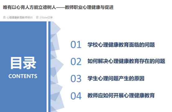 非常荣幸能够通过国家智慧教育公共服务平台,参与心理健康教育教师培训。作为学院的实习辅导员,参与本次培训使我受益良多。通过本次的学习,使我更加深刻的意识到对学生心理教育与辅导的重要性。