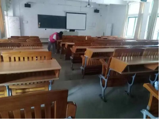 在创新楼一楼,志愿者们按照负责人的指令,有序打扫着教室办公室、楼梯。在活动中同学们积极行动,仔细地打扫着角落里的垃圾,就连边角的细小尘埃也被认真的收集起来。