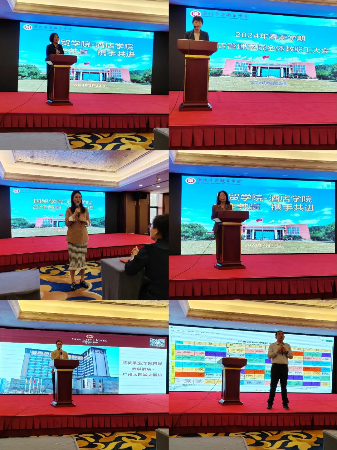 国贸学院院长梁悦教授围绕着师资队伍建设、实训室建设、专业发展、学科竞赛、国际交流等议题做了详细介绍,表示国贸学院始终坚持以学生为中心的宗旨,注重实践教学和培养学生的应用能力,希望通过与酒店管理学院深度合作,借助附属教学酒店·广州太阳城大酒店的平台,实现资源共享、优势互补,进一步深化国贸学院的产教融合教学模式,将学院的教育资源和教学强项与酒店行业的实际操作相结合,培养出更具市场竞争力的复合型人才,共同探索教育与行业融合的新模式和新路径,为教育与行业的发展走出一条独特的适用道路。
