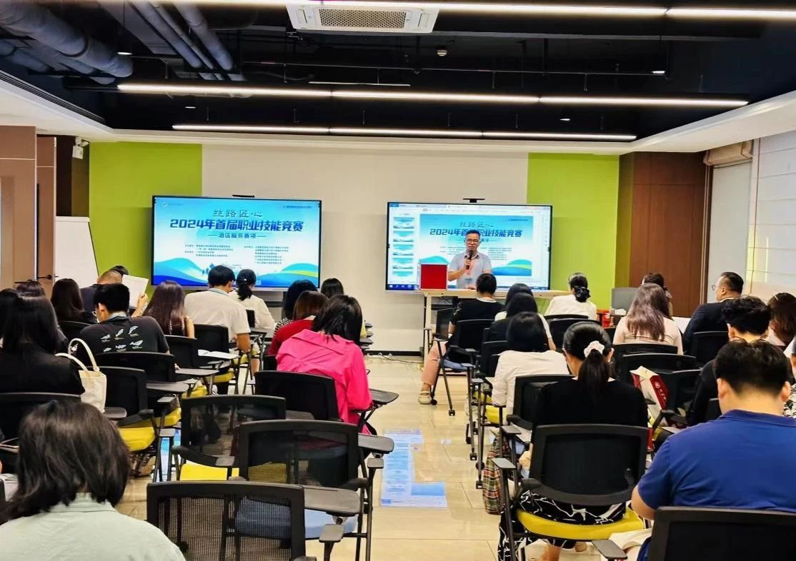 2024年5月20日17时30分,“丝路匠心”2024年首届职业技能竞赛酒店服务赛项领队会议顺利召开。本届技能竞赛51支参赛队伍的领导老师全部参加了会议,会议由SUNBET申搏官网教务处陈柳红副处长主持。
