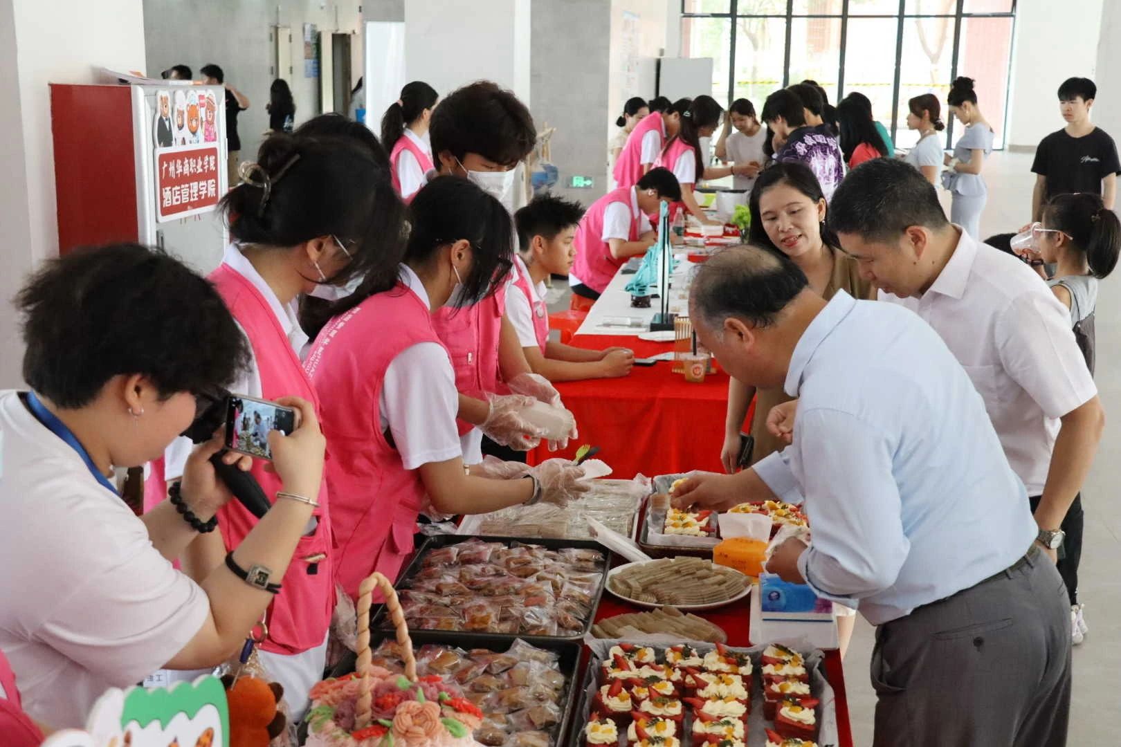 在活动中,酒店管理学院的志愿者们热情投入,非遗美食、菜品雕刻、非遗漆扇、主题宴会设计及AI酒店机器人展示等项目吸引了众多目光。这些展示项目融合了传统与科技,彰显了专业特色。志愿者们耐心地为参观者讲解,积极参与组织协调工作,成为活动周的一道亮丽风景线,充分展现了专业素养与志愿服务精神。
