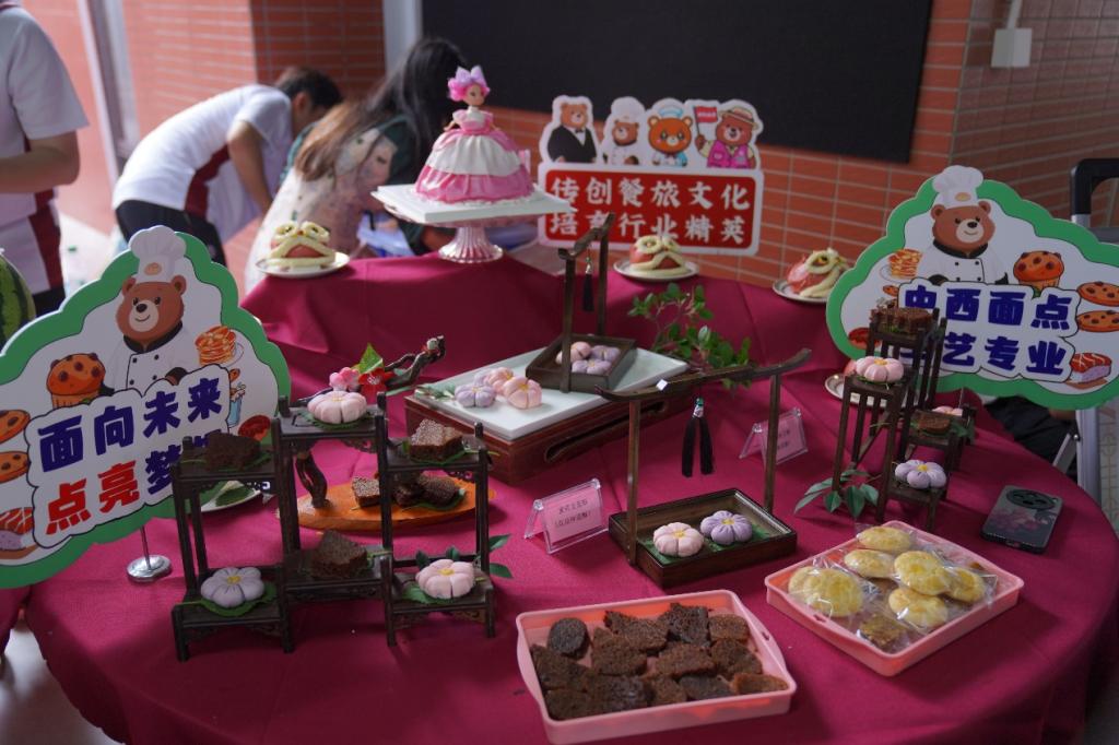 活动现场,丰富多彩的非遗项目令人目不暇接。从精巧绝伦的传统手工艺展示,到韵味十足的民俗表演,每一个环节都吸引着同学们的目光。而在众多展区中,酒店管理学院的摊位更是人气爆棚。独具匠心的非遗主题美食作品陈列其中,将岭南文化元素与烹饪技艺完美融合,引得师生们纷纷驻足围观,拍照打卡、品尝交流,现场热闹非凡。