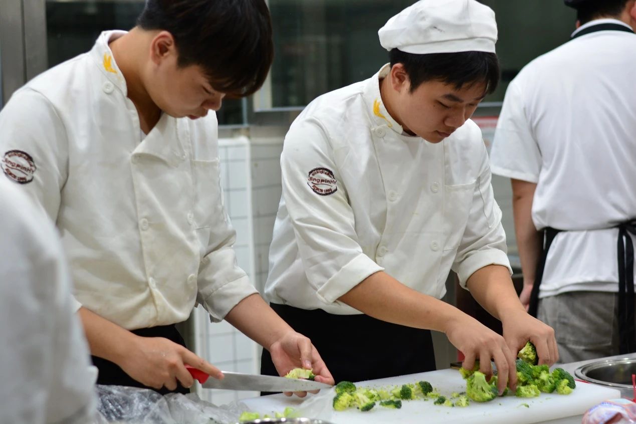 在同学们动手制作点心期间,赵永锋副校长走进厨房探望这群小师傅,看到他们专业、专注的表现,脸上露出了欣慰的笑容。他不时地点头称赞,对学生们的表现给予了高度肯定,鼓励他们继续保持这份专注和热情,未来一定能成为餐饮行业的佼佼者。