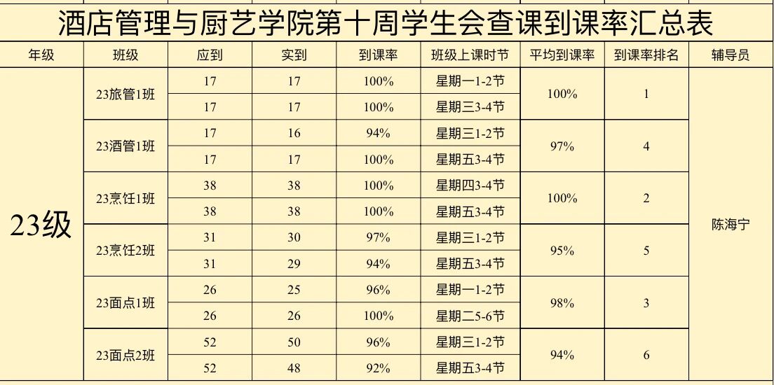 23级烹饪工艺1班:100%