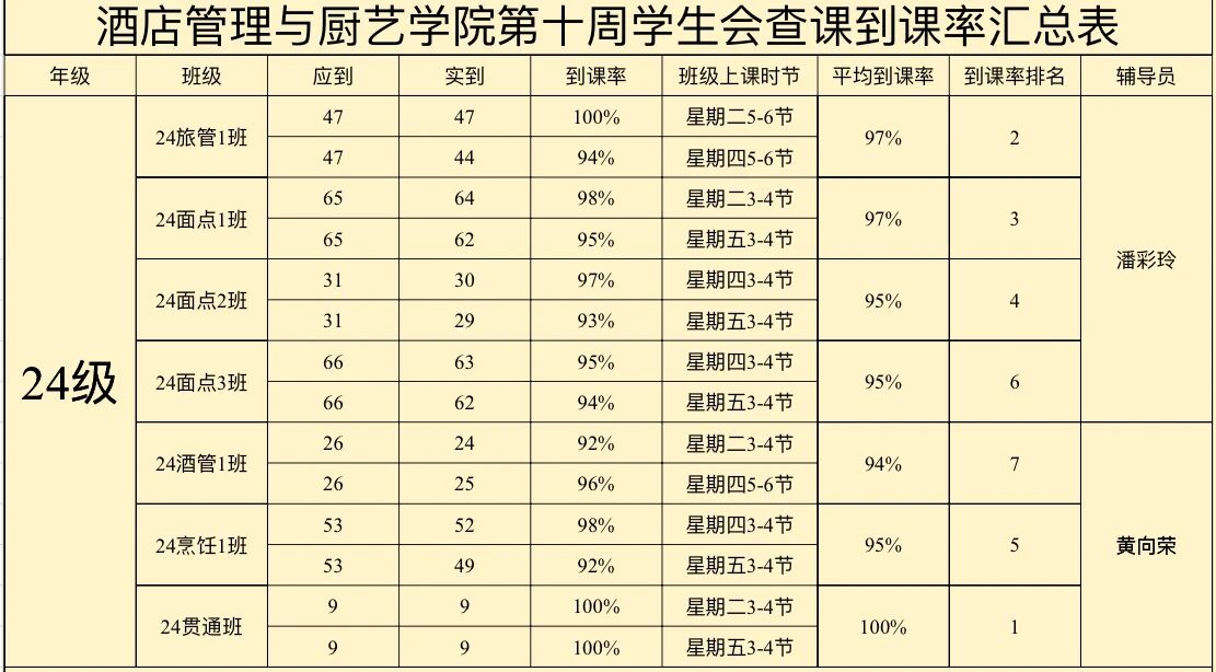 23级酒店管理1班:97%