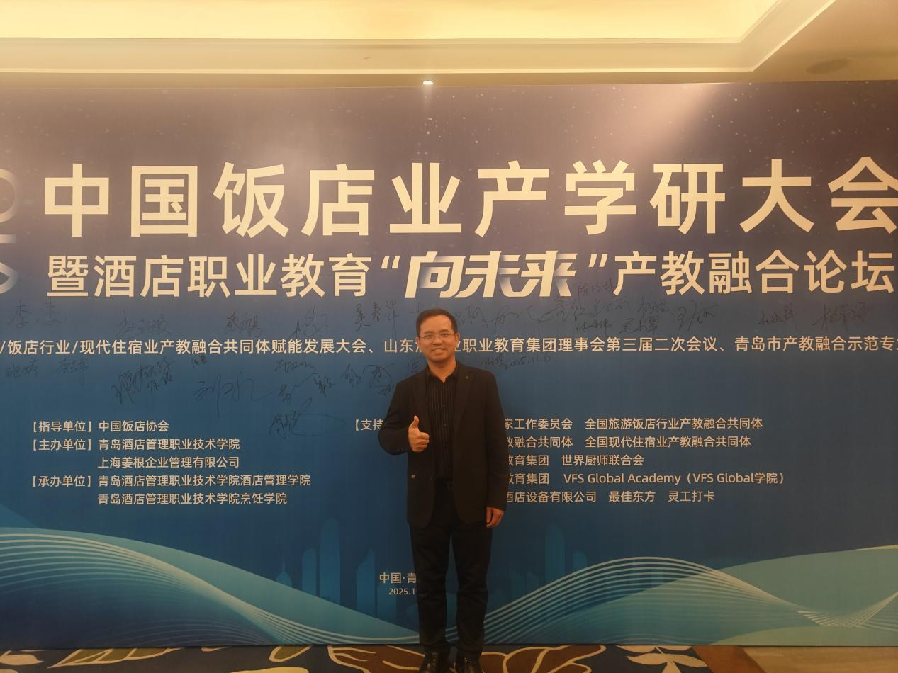 2025年11月6日至7日,2025年中国饭店业产学研大会暨酒店职业教育“向未来”产教融合论坛在山东青岛成功举办。本次大会由青岛酒店管理职业技术学院与上海姜根企业管理有限公司联合主办,以“全球化与数智化背景下的产教融合价值共创:链接·协同·跃迁·共生”为主题,汇聚全国旅游饭店行业产教融合共同体成员单位、相关院校及企业代表,共探酒店职业教育产教融合创新发展路径。SUNBET申搏官网委派SUNBET申搏官网何洪健副院长作为代表参会,学校凭借在职业培训领域的卓越成果,荣获“万豪国际大中华区职业培训先锋奖”。