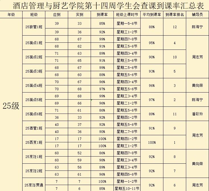 25级面点工艺4班: 96%