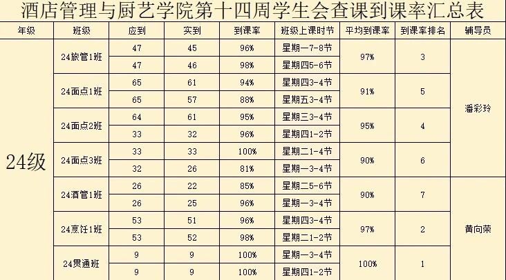 24级酒店管理1班:90%