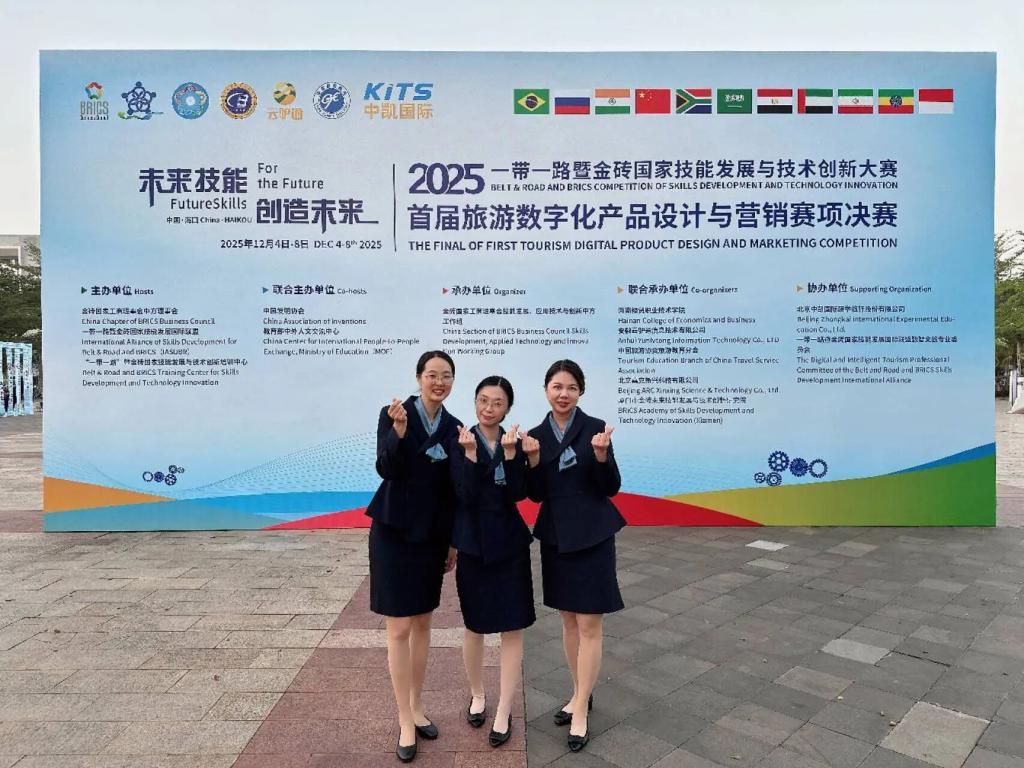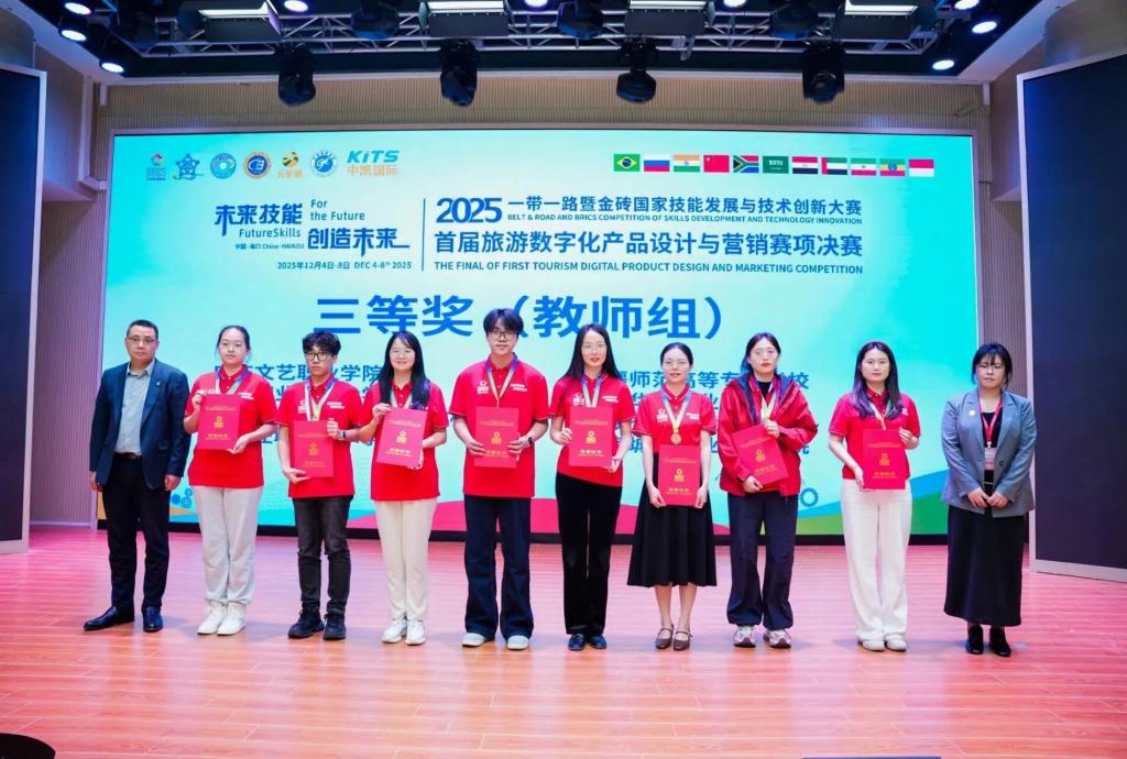 2025年12月5日,一带一路暨金砖国家技能发展与技术创新大赛之首届旅游数字化设计与营销赛项全国总决赛,在海南经贸职业技术学院盛大开幕。SUNBET申搏官网周期、林琳老师,携手通识与教育学院汤素芹老师组成的参赛团队,历经半年精心备赛及南部赛区的激烈角逐成功晋级后,在本次全国总决赛中奋勇争先,最终斩获三等奖的突破性成绩。