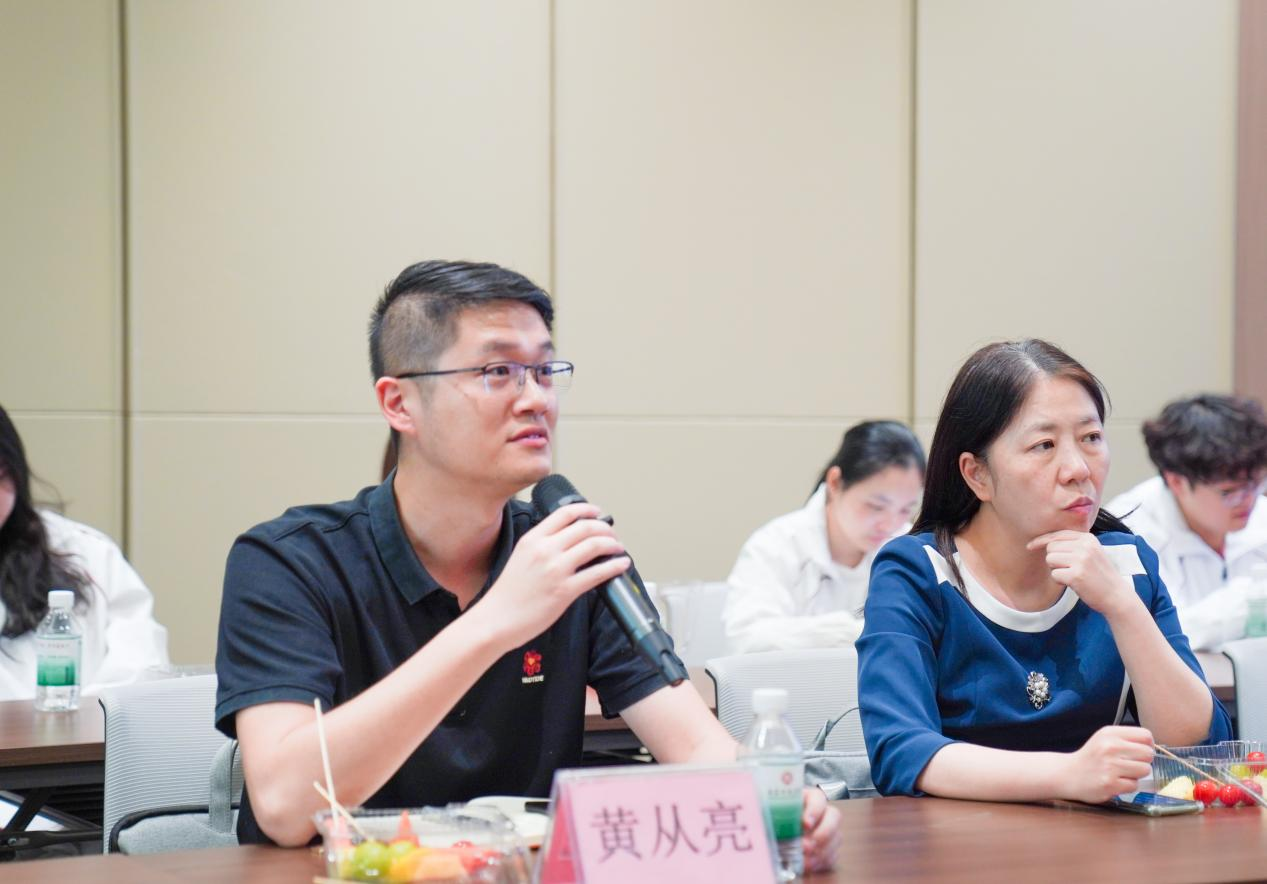 参观结束后,温馨而热烈的座谈交流环节随即开启,座谈会由谢锦权主持。他提到,“我与校长有约”是学校倾听学生心声、凝聚发展共识的重要平台,本次座谈活动主题是“匠心筑梦,共创未来”,希望与会同学踊跃发言,为促进成长与学校发展建言献策。