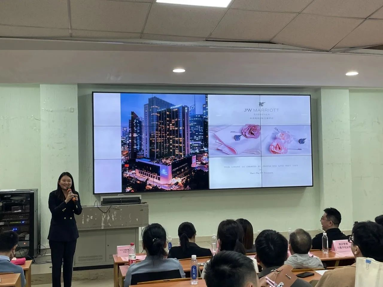 宣讲会上,谢锦权代表酒店管理学院对各位企业来宾参加企业招聘宣讲会表示欢迎与感谢。谢锦权表示,校院各级领导十分重视毕业生的岗位实习与就业工作,通过积极访企拓岗不断加强校企合作,为同学们的实习与就业开拓更多优质的资源与机会。会上谢书记向毕业生们提出三点希望:高度重视、珍惜与把握机会, 自信自强、积极展示求职能力与风采,严谨认真、不断提高职业技能与职业素养。