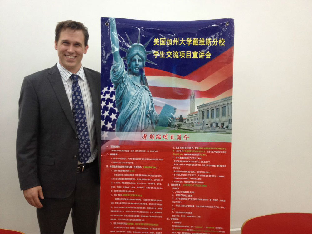 2015年11月10日下午1时30分,2016年度美国加州大学戴维斯分校学生交流项目宣讲会在昌平校区端升楼106成功举办。本次宣讲会的主讲人是美国加州大学戴维斯分校新葡萄官网amg国际交流项目协调人,Charlie Lemcke。出席本次宣讲会的还有新葡萄官网amg外事办马允博士、行政法所张力博士和院务办公室主任李仁燕老师。许多对交流项目感兴趣的同学也参加了本次宣讲会。