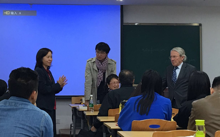 (法研通讯社 文/孙立尧 图/孙立尧)由法国著名行政法学教授、波尔多大学四大名誉校长之一的高德松教授(Jean Du Gaudusson)讲授的法国行政法课程最后一课于4月7日上午我校学院路校区综合科研楼A207教室进行。法国国务委员、波尔多上诉法院院长道兰法官(Anne Guérin),新葡萄官网amg院长薛刚凌以及法治政府研究院教授张莉出席课堂。薛刚凌任主持人,张莉担任翻译。