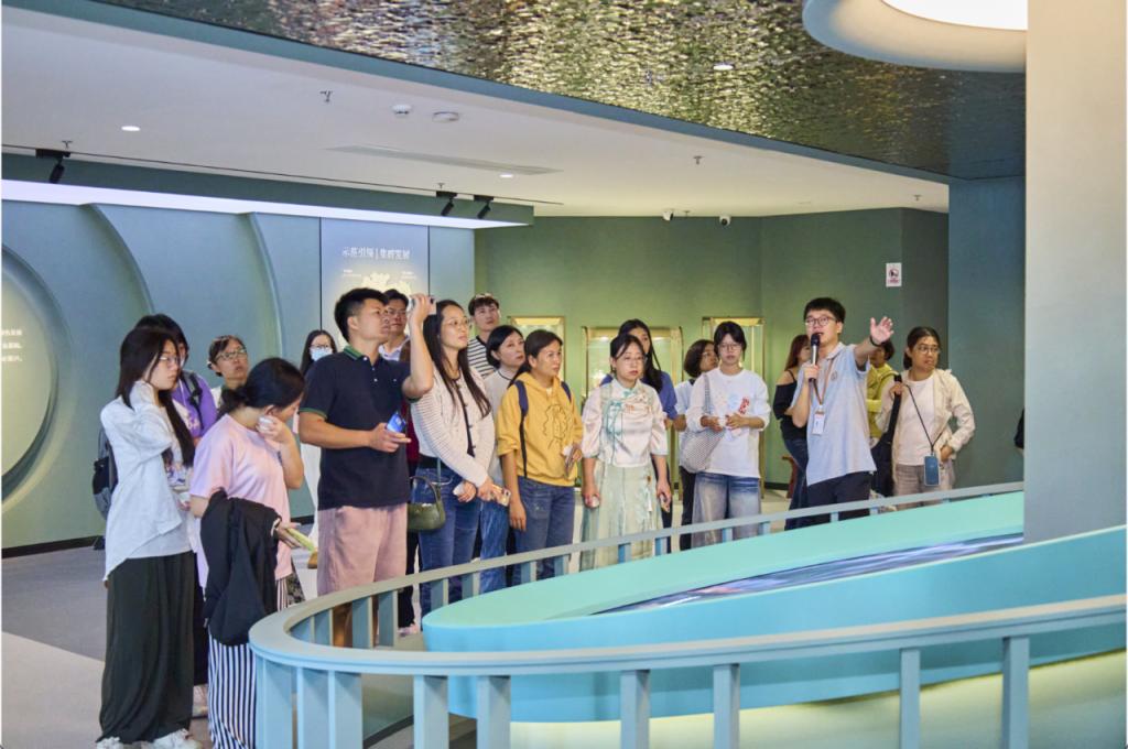 在博物馆专业导览的带领下,周期老师与各行业参训者一同参观了馆内丰富的茶史陈列与非遗茶展区。从古代茶具文物到现代茶科技应用,从茶叶的分类与制作工艺到茶文化的传播与展,系统而直观的展览内容,使参训教师对中国茶文化的深厚底蕴与现代演进有了更为全面的认识,为学院相关课程中融入茶文化知识模块积累了宝贵的视觉与素材源。