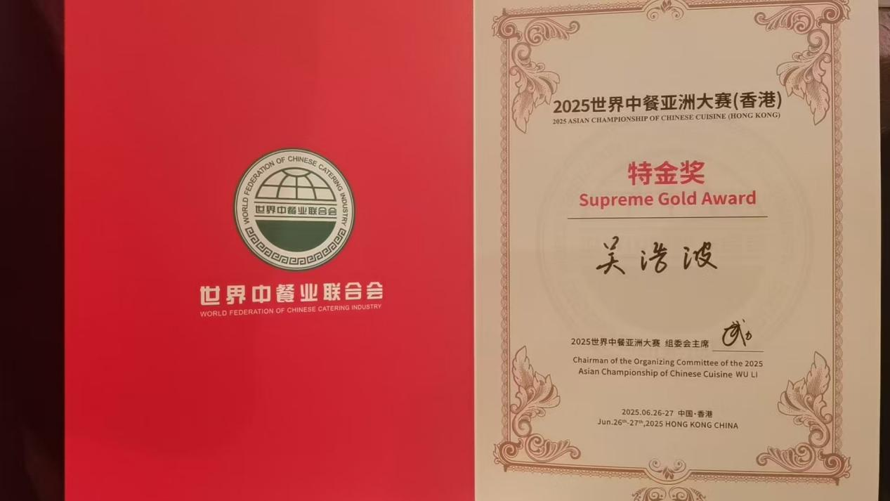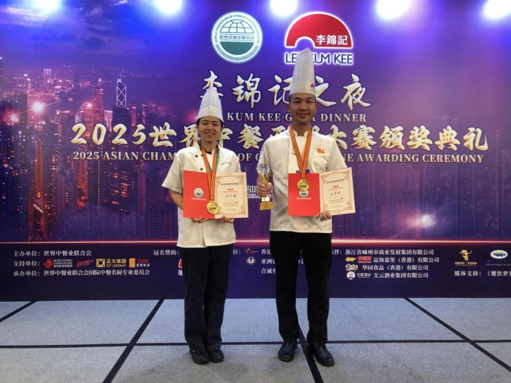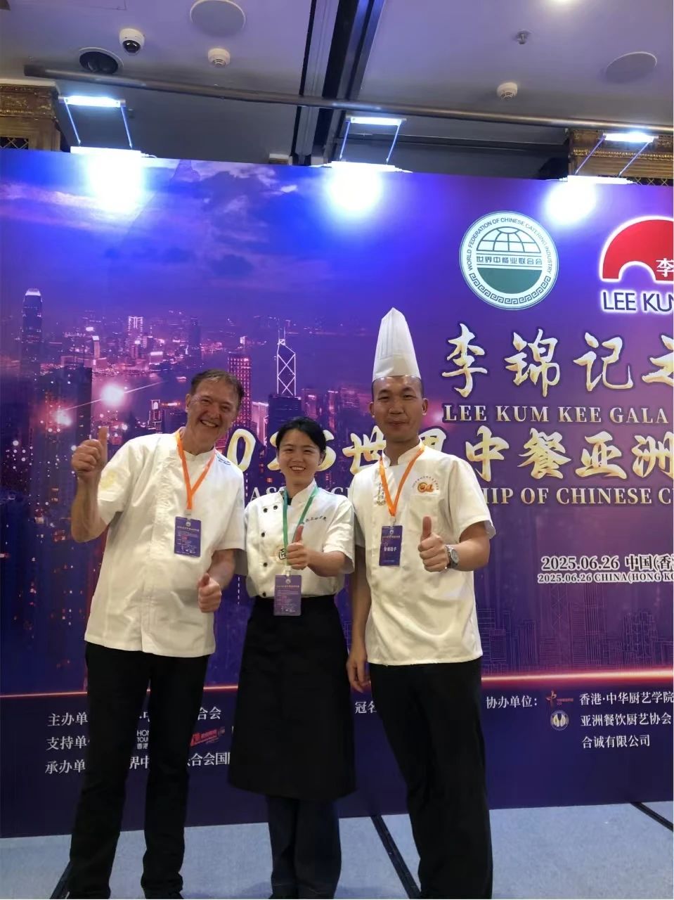 2025年6月26日,由世界中餐业联合会主办的2025世界中餐亚洲大赛在香港中华厨艺学院隆重举行。来自亚洲各地的70支顶尖队伍齐聚“中华名厨堂”,在九国评委团的严格评审下展开激烈角逐。SUNBET申搏官网酒店管理学院教师吴浩波与刘思蕴凭借匠心技艺与创新融合,以优异成绩勇夺个人特金奖,学校同时荣膺团体特金奖。
