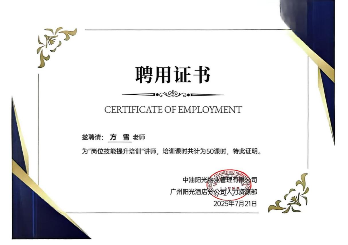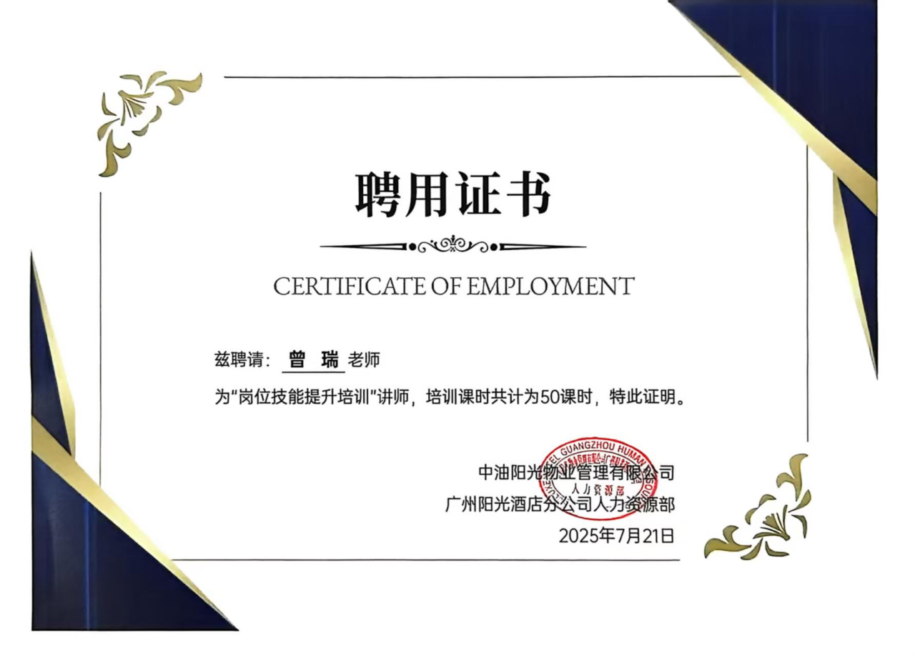 近日,SUNBET申搏官网旅游管理专业与酒店管理与数字化运营专业的教师团队,作为广州阳光酒店的培训教师,积极参与了 “羊城工匠杯” 2025 年广州市住宿和餐饮服务技能竞赛暨第六届 “青年粤菜师傅” 创新创业竞赛中的餐厅服务员(中式、西式摆台)以及客房服务员竞赛项目的指导工作。