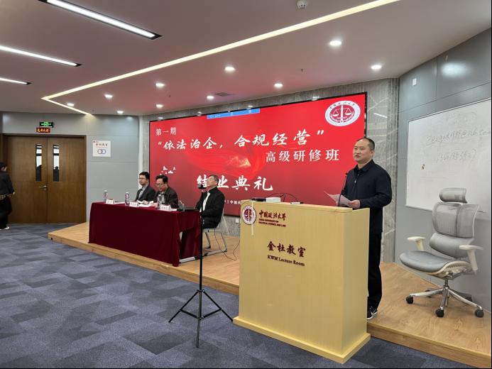 优秀学员代表河南中原特钢装备制造有限公司综合管理部罗立明部长发言,罗部长感谢集团领导高度重视本次培训,是依法治国在集团公司具体体现,是集团公司加强依法治企,是提升企业合规经营能力的具体实践,感谢学院在生活上无微不至的照顾,课程设置精彩纷呈,收益匪浅。