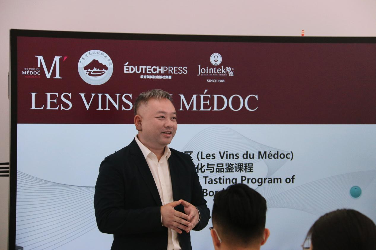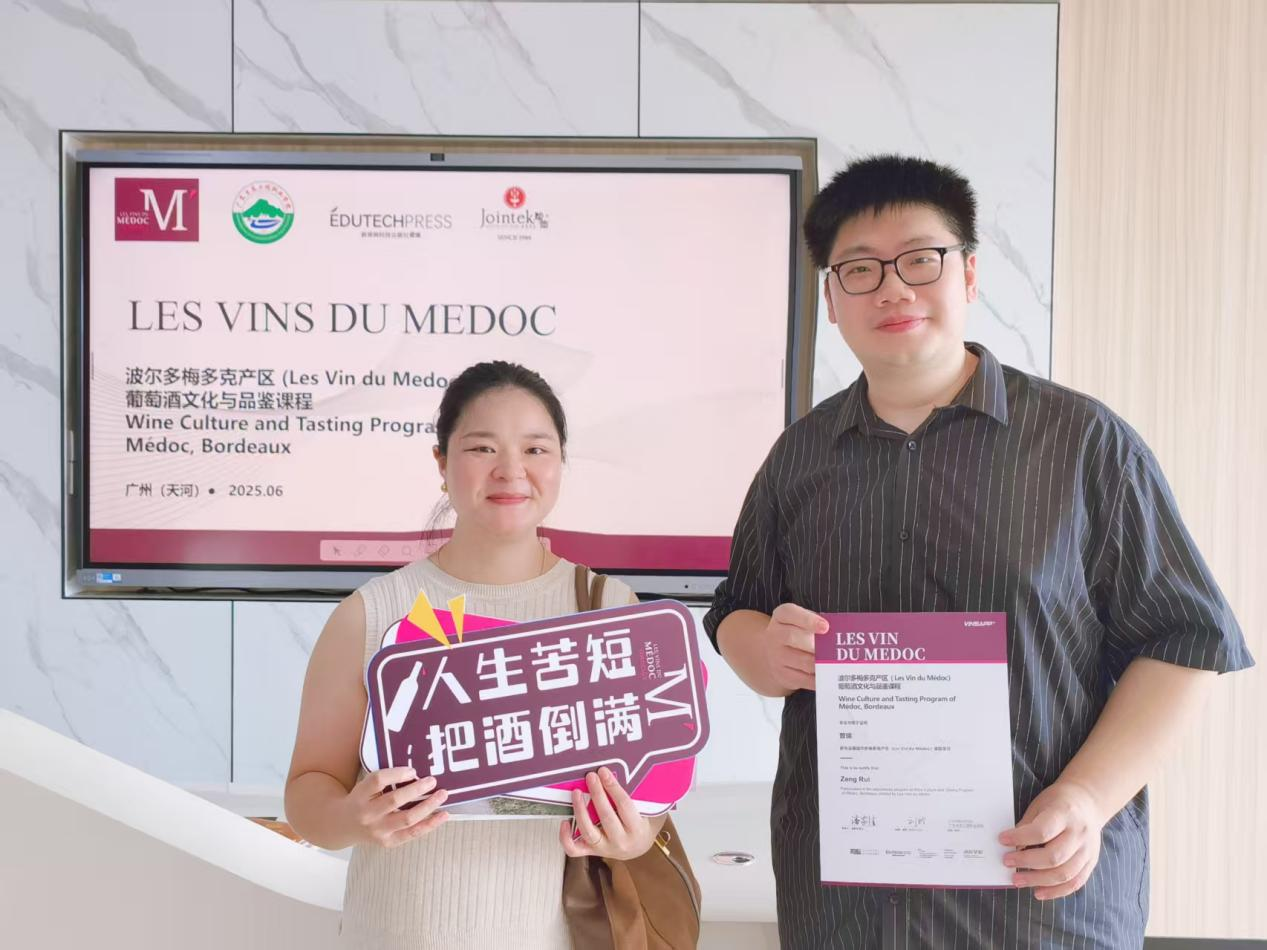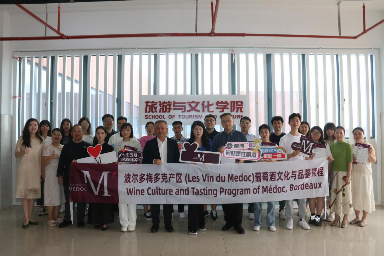 2025年6月30日,我院曾瑞老师、江耀辉老师受邀前往广东生态工程职业学院,参与波尔多梅多克产区葡萄酒文化与品鉴课程培训。此次培训由波尔多梅多克产区协会携手广东生态工程职业学院旅游文化学院联合举办,旨在为职业院校教师、葡萄酒研究者及餐饮业内人士搭建专业的葡萄酒学习平台,助力葡萄酒文化传播与专业人才培养。