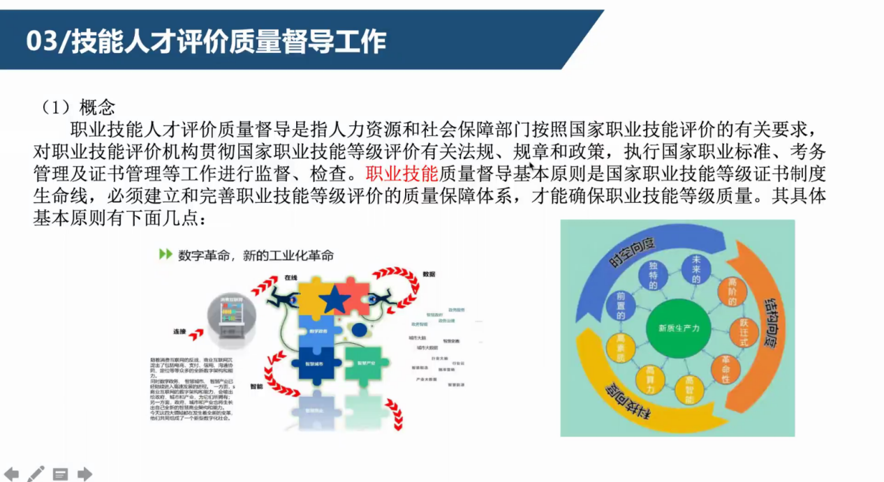 本次培训主要针对《人力资源和社会保障部关于改革完善技能人才评价制度的意见》和《技能人才评价质量督导工作规程(试行)》等对内部督导员的相关规定和要求开展集中学习,紧密围绕技能人才评价的核心要点,包括职业技能鉴定质量督导,质量督导技术方法,现场督考,违规事件调查与处理,质量督导人员管理与使用等,从理论知识的深度剖析到实际操作的精准指导,全方位覆盖。一方面,深入解读国家关于技能人才评价的最新政策法规,让教师们明晰政策导向,确保督导工作有法可依、有据可循;另一方面,聚焦评价标准制定与优化,通过大量案例分析,探讨如何根据不同技能领域特点,细化量化考核指标,使评价真正做到公平、公正、公开。