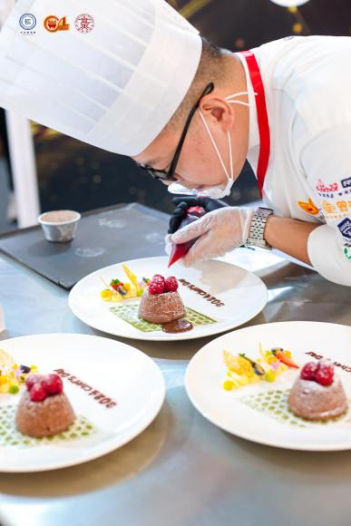 崔毅峰老师《熔岩流心巧克力》和吴浩波老师《香芒牛油果鸡肉塔/南瓜黑松露鸡肉奶油汤》菜品制作的烹饪技艺和独特的创意摆盘,成功征服了评委们的视觉及味蕾。他们在比赛中制作的菜品,从准备工作到色香味俱佳呈现,充分展现了我院的高水平烹饪实力。