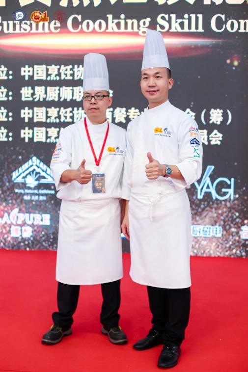 比赛现场,参赛选手们纷纷亮出娴熟拿手绝活,为观众呈现了一场视觉与味觉的盛宴。在众多参赛选手中,我院教师崔毅峰老师和吴浩波老师凭借高超的烹饪技巧脱颖而出,取得了2枚金牌的骄人成绩。