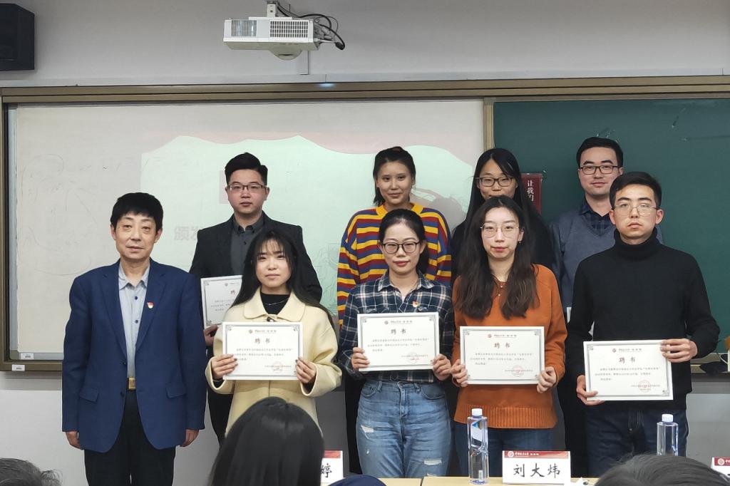 会议伊始,2019级和2020级各党支部书记和委员首先就党支部的建设情况进行了简要介绍。紧接着,郭虹老师介绍了新葡萄官网amg先锋传帮带活动的筹备情况和未来发展方向。她表示,新葡萄官网amg先锋传帮带活动得到了学院党委的大力支持,先锋传帮带活动将围绕互助共建基层党支部,组建朋辈导师团队,共建爱心传递站,开展经验交流分享等四大板块展开。随后,王家启老师宣布了第一届先锋传帮带朋辈导师名单,并感谢各位朋辈导师将自己的经验分享给低年级同学,解决低年级同学在学习上、工作上和生活上的困难,希望低年级同学珍惜先锋传帮带平台,不断提升自己,并将传帮带的优良传统传承下去。朋辈导师代表彭小飞从宏观、中观和微观三个层面对朋辈导师的工作提出了希冀和向往,表示先锋传帮活动坚持团队育人的培养模式,创造性地为我们提供一个互相学习,互相交流,互相帮助的平台。杨婷婷老师指出,先锋传帮带活动的开展可以有效加强昌平校区同学和学院路校区同学之间的沟通和联系。她鼓励大家积极融入先锋传帮带活动,并祝愿活动越办越好。随后,刘大炜书记和杨婷婷老师为首届朋辈导师颁发了聘任证书。