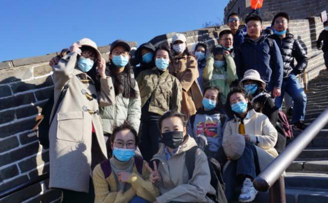 八达岭关城修建于约500年前,是北京地区保存得较为完整长城段之一,长期是古代的军事重地和交通要道。其城墙以条石为建筑材料,是万里长城中采用的建筑规格最高的一段,无论是近观抑或远望,都给人坚不可摧的感觉。八达岭长城不但在古代起到抵御外敌的屏障作用,在中华民族抗击日本侵略的战斗中,也谱写了响彻云天的壮歌。1940年1月,八路军在八达岭附近建立了平北军分区,领导北至坝上草原,南至北平,东至承德,西至张家口的抗日游击战,开辟了一个特殊的抗日战场。 回顾历史之后,同学们开始游览八达岭长城北段。虽然关城到终点的北8楼距离不足两公里,但其地理位置险要,修筑于起伏较大的山脊之上,即使同学们身上负载不多,开始攀登不久后,行进速度就开始下降,大家不禁萌生出对长城保卫边疆将士们的敬佩之情。凛冽的寒风不断挑战着同学们的体能,锻炼着同学们的意志。但同学们一致向前,毫不畏惧,在正午时刻到达了北段长城的终点。