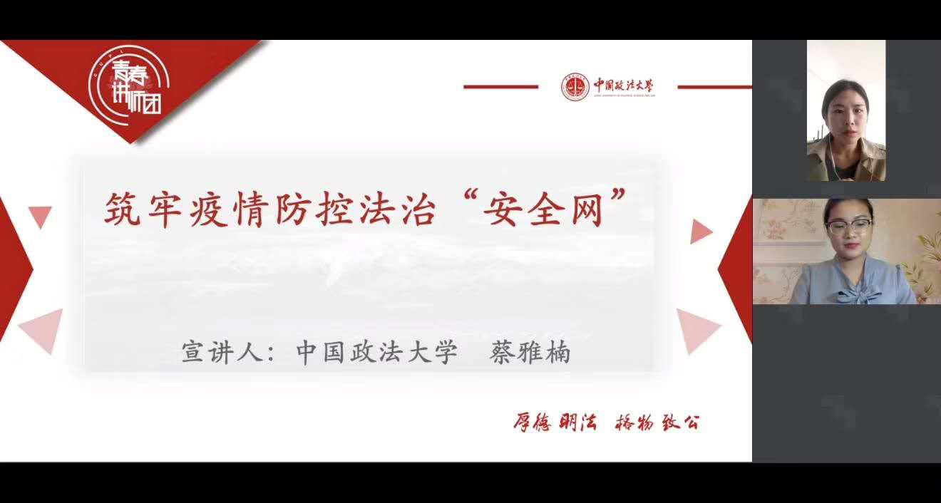 蔡雅楠同志代表新葡萄官网amg参加六大高校联合抗疫志愿宣讲,作为“青春讲师团”讲师,围绕“筑牢疫情防控法治‘安全网’”主题与大家一同进行交流分享。
