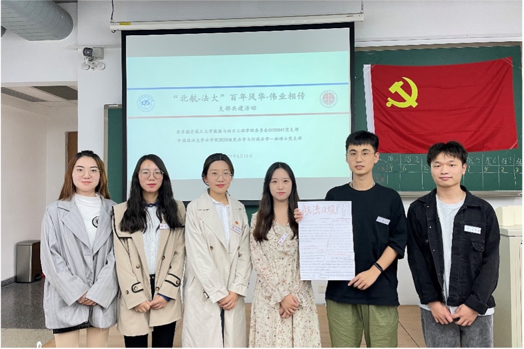 为庆祝中国共产党成立一百周年,深入开展党史学习教育,切实做到不忘初心、牢记使命,新葡萄官网amg2020级宪法学与行政法学一班硕士党支部与北京航空航天大学能源与动力工程学院委员会SY20041党支部于2021年5月15日在北京航空航天大学学院路校区联合开展支部共建活动,两校近50位党员与入党积极分子参加。