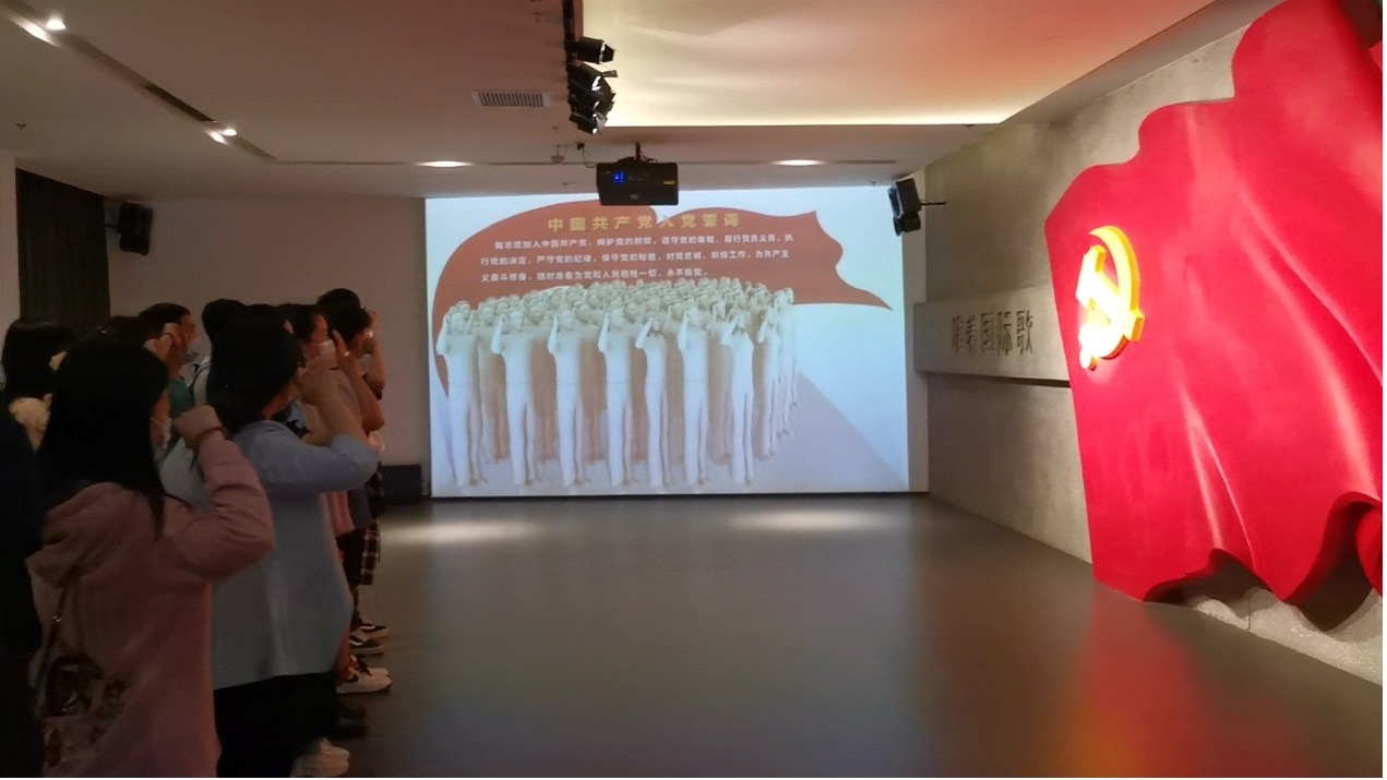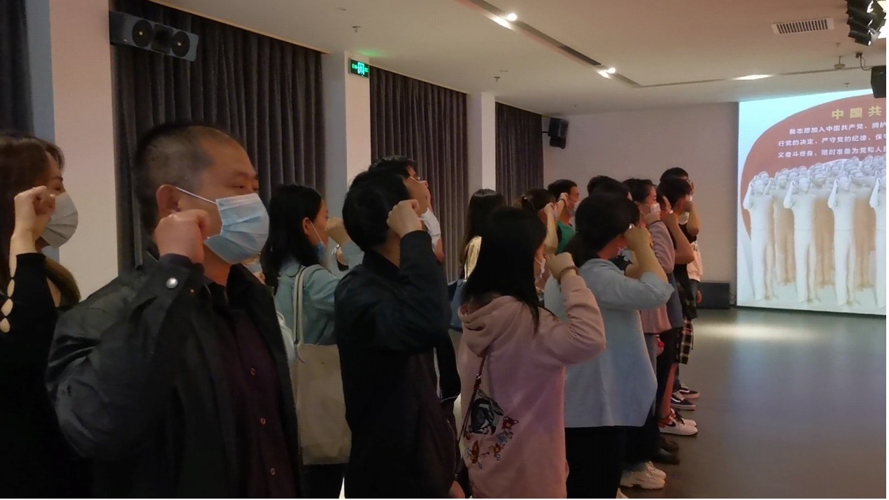 在参观学习的最后,在肃穆的宣誓大厅,全体党员干部举起右拳面对党旗,重温入党誓词,用发自内心的声音抒发对党忠诚的决心。