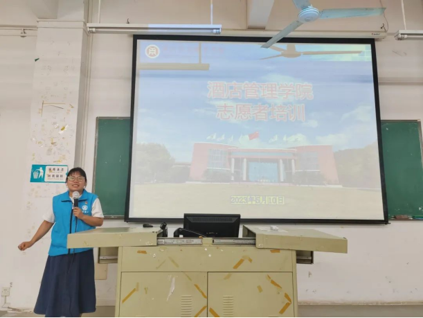 为深入学习贯彻习近平新时代中国特色社会主义思想,坚持把开展主题教育同推动育人中心工作结合起来,为有效落实我院党支部与增城区石滩镇“双百工程”社工站党支部“红联共建”项目,鼓励更多的大学生志愿者参与服务社区的实践活动,酒店管理学院于2023年5月10日晚在博B201举行了“'义'起行动,社校共建”为主题的志愿者培训讲座。石滩社工站的4名社工老师莅临现场为我院150余名师生进行了志愿服务专题培训。培训会由我院辅导员兼党支部组织委员黄向荣主持。