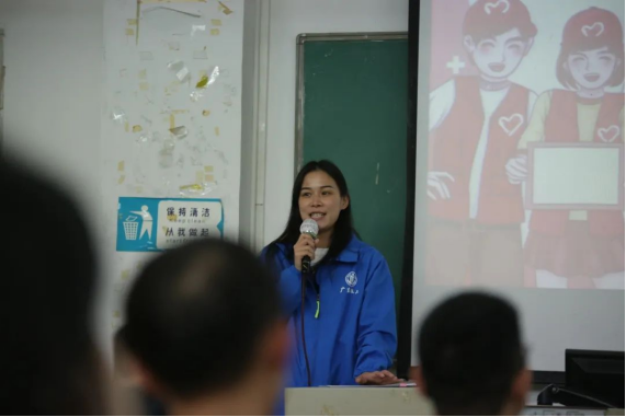讲座现场,来自石滩镇“双百工程“社工站的三位社工老师以PPT和视频的形式向志愿者介绍本次活动的目的及意义,并通过什么是志愿者”、“志愿者做些什么”、“志愿者服务注意事项”、“志愿服务理念”等问题,引导同学们进入培训主题,触发大家对志愿服务的思考。