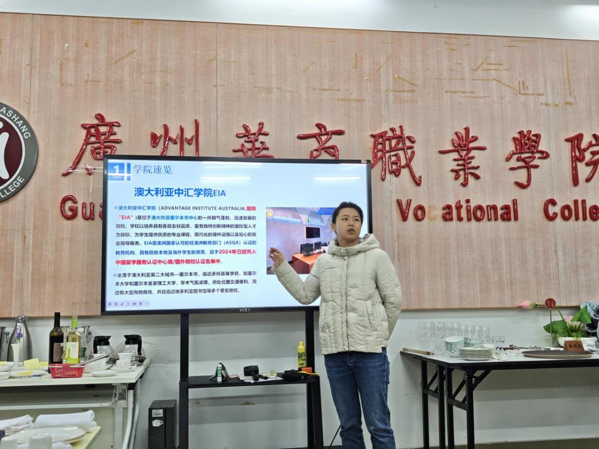 接下来,谢锦权副院长作培训汇报。他提到此次赴澳洲进行培训,学习了解了澳洲的教育教学模式及其先进的教育教学理念,探讨推进职业教育国际化合作的创新路径,并为“粤菜师傅”海外交流及“中餐繁荣基地”项目搭建桥梁。
