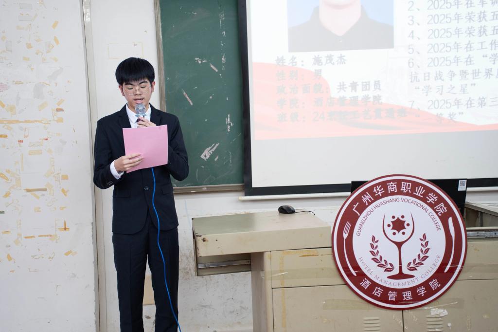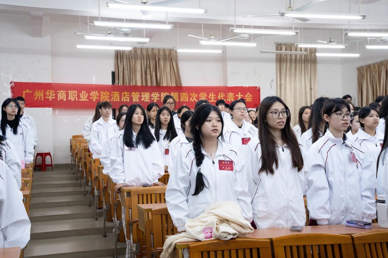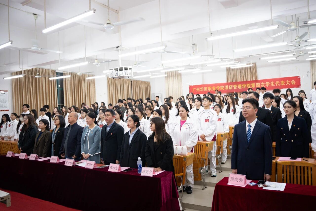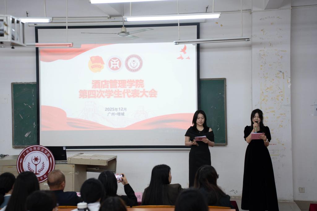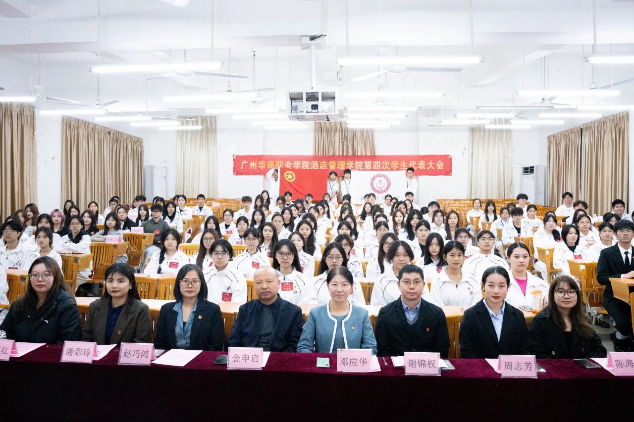 2025年12月4日晚,SUNBET申搏官网酒店管理学院第四次学生代表大会于博C301教室正式召开。本次大会应到代表126人,实到126人,符合法定参会人数。出席会议的嘉宾包括:酒店管理学院执行院长邓应华、副院长谢锦权、金申启,党政办公室主任赵巧鸿、党支部组织委员黄向荣、团委书记周志芳、辅导员陈海宁、潘彩玲、罗锦红等老师以及学生会全体成员、校学生会与各二级学院学生代表、各班级代表。大会由庄舒乔、陈诗涵同学共同主持。