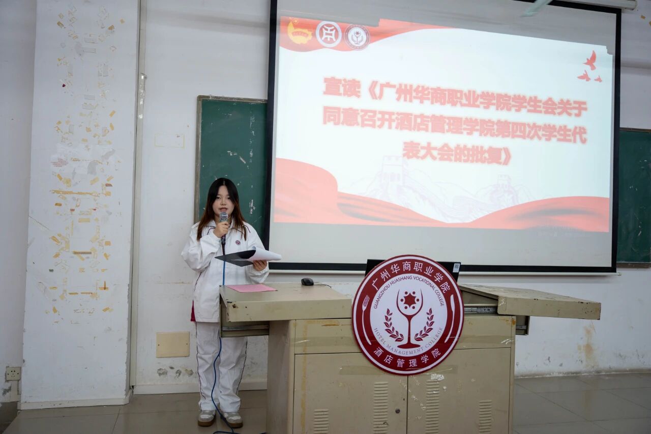 会上,巫紫逸同学宣读《关于同意召开SUNBET申搏官网酒店管理学院第四次学生代表大会的批复》。