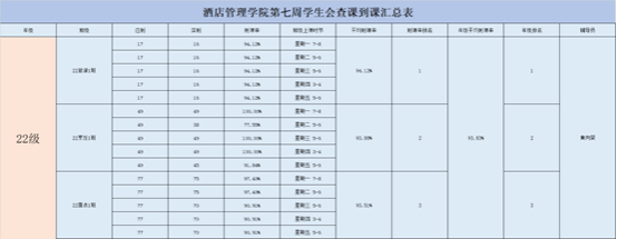 时光飞逝,日月如梭,转眼间第七周已经结束,在院团委和各班班干部的配合下,第七周的查课已取得圆满成功,现将第七周的查课内容如下展示: