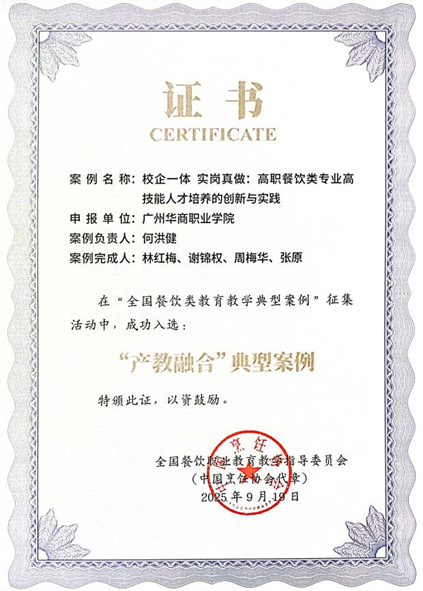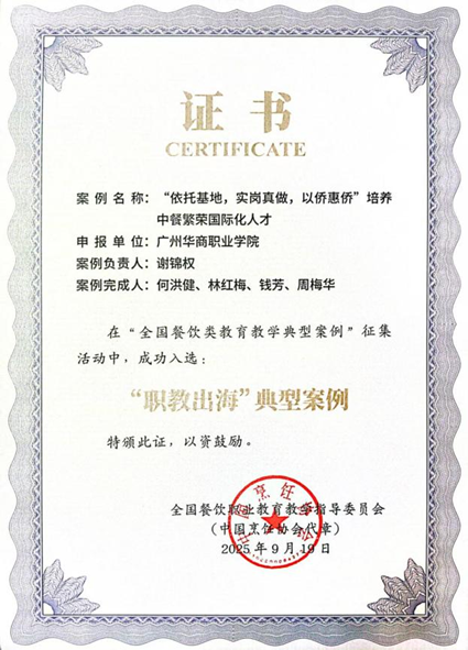 近日,从全国餐饮职业教育教学指导委员会传来喜讯,SUNBET申搏官网酒店管理学院申报的两项案例,在2025年“全国餐饮类教育教学典型案例”征集活动中成功入选,其中“校企一体 实岗真做:高职餐饮类专业高技能人才培养的创新与实践”入选“产教融合”典型案例;“依托基地,实岗真做,以侨惠侨”培养中餐繁荣国际化人才入选“职教出海”典型案例。