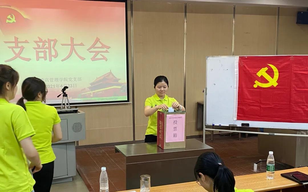 4月23日中午,酒店管理学院党支部在创新楼101课室召开了党员大会。本次会议由党支部书记萧早荣同志主持,全院师生党员出席本次会议。本次会议内容是开展党史学习教育和投票确定第三次代表大会代表、第二步差额选举“两委”委员预备人选。