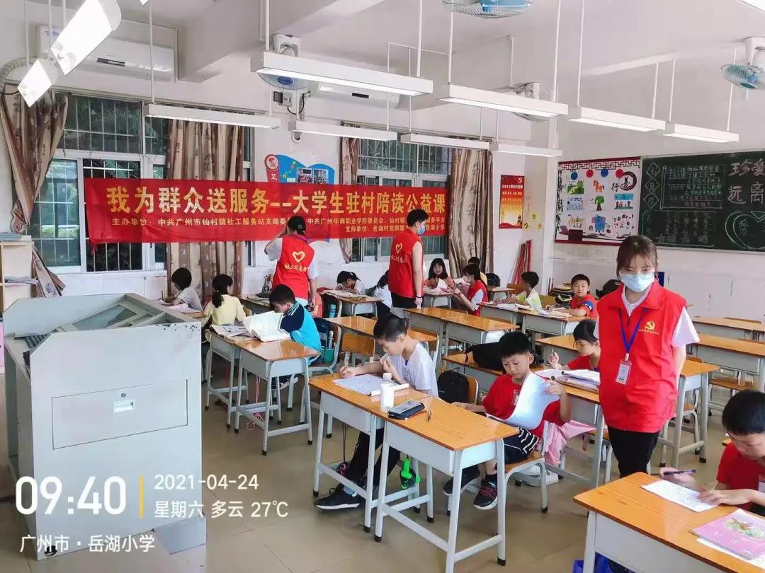 4月24日,酒店管理学院学生党员志愿者赴广州市增城区仙村镇岳湖小学开展“红联共建·我为群众送服务——驻村陪读公益课”第三课。