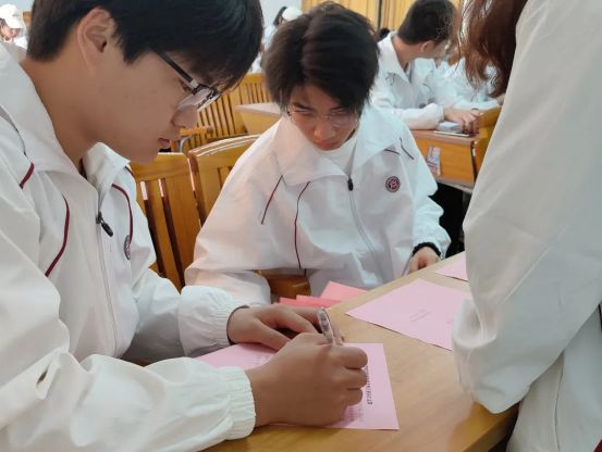 本期4名发展对象依次上台向党组织客观汇报考察期间个人在学习、工作、生活及思想等方面的表现,正式向党支部提出通表申请。他们在汇报过程中表明入党决心,并表示时刻准备着接受党组织考验,更好地发挥全心全意为人民服务的精神。从左到右分别为陈德森、陈宇亮、刘斯贤、黄金漫同学。