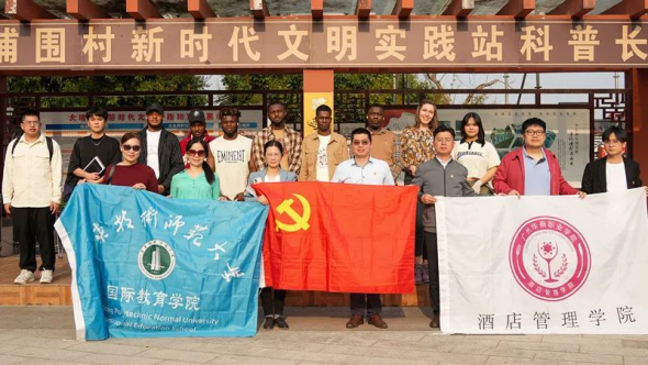 (酒店管理学院党支部、石滩镇社工站党支部、广东技术师范大学国际教育学院师生合影)