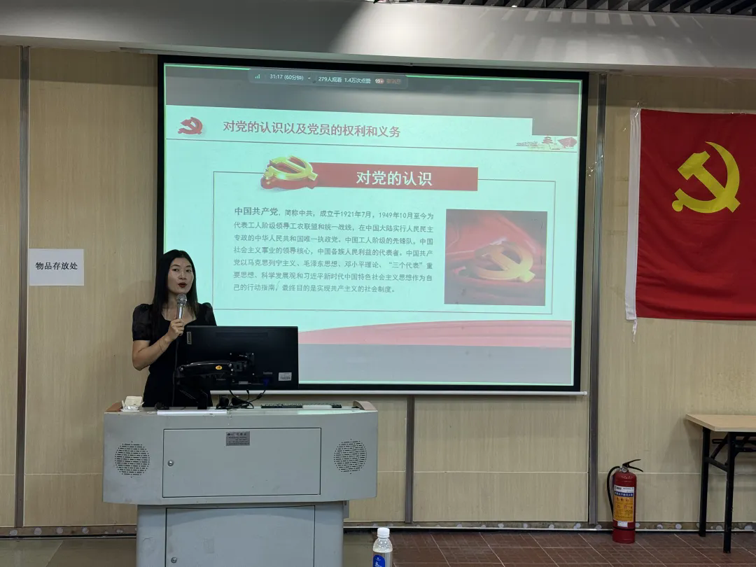 接下来,主讲老师陈金苗围绕“如何端正入党动机”主题进行授课。陈老师分别从中国共产党的三大历史贡献、对党的认识以及党员的权利和义务、树立正确的入党动机、如何以实际行动争取早日入党四部分内容为全体学员进行了详细讲解。通过学习,学员们更好地理解了党的性质、党史的各个阶段和基本路线,增强对党的认同感和归属感。