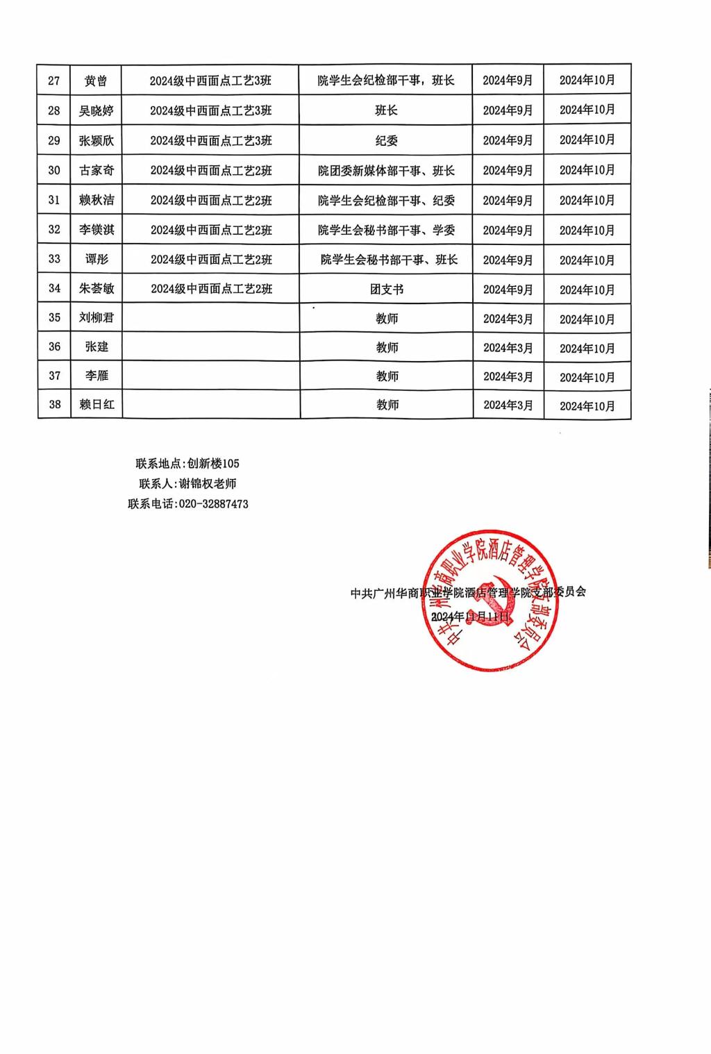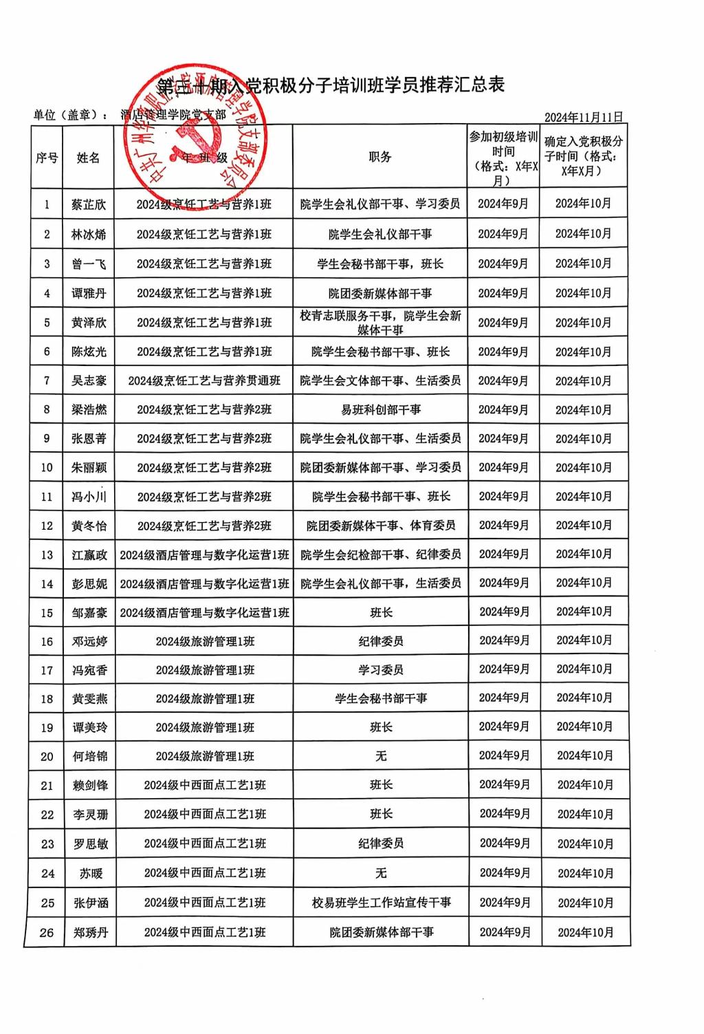 经酒店管理学院各班级团支部推选,学院初级党课考核,酒店管理学院党支部讨论决定,拟推荐蔡芷欣等38名入党积极分子参加SUNBET申搏官网中级党课培训。党员、团员和群众对推荐对象有意见和建议,可采取书面实名制方式于2024年11月13日前向酒店管理学院党支部反映,公示期为2024年11月11日-2024年11月13日,共三天。