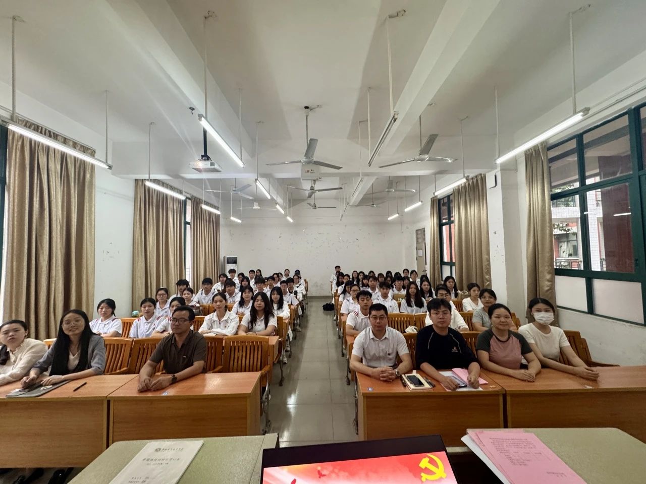 为切实加强党员队伍建设,确保党员发展工作的规范性与科学性,吸纳更多优秀人才加入党组织,不断为党组织注入新的活力,推进我院党建工作高质量发展,酒店管理学院直属党支部于2025年6月4日中午,在博学楼B栋202教室召开了2025年春季学期发展对象转预备党员通表大会暨组织生活会。本次会议得到了党支部的高度重视,与全体师生党员(含预备党员)齐聚一堂,共同见证这一时刻。会议由我院党支部副书记谢锦权主持。
