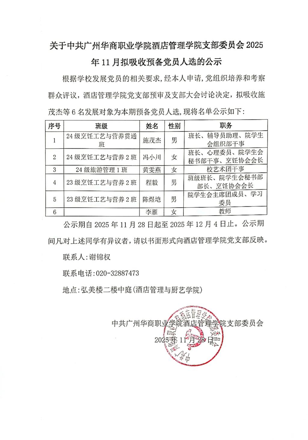 拟吸收预备党员人选的公示