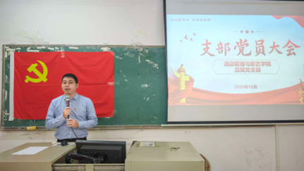 在会议最后,党支部副书记谢锦权老师送上寄语。他先恭喜宋佳柔同学顺利转正,叮嘱她要继续加强学习、戒骄戒躁、再接再厉,牢记党员身份,多为同学办实事、解难题,做好先锋表率。同时也鼓励全体酒管学子,以身边榜样为标杆,勤奋学习、积极进取,努力向党组织靠拢。