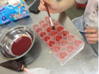 认真给巧克力上色的同学们