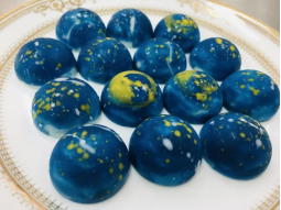 星空巧克力外壳材料:可可脂+色豆;白巧克力