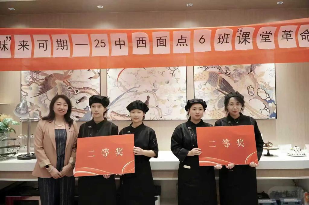 此次作品展的圆满举办,不仅是学校深化“课堂革命”、推进教学改革的生动缩影,更见证了25级中西面点工艺6班的亮眼成长。作为“课堂革命”的鲜活实践成果,学子们从初入学时的零基础小白,稳步成长为如今能独立完成创意西点主题展台的专业学习者,这份蜕变正是“课堂革命”育人成效的有力印证。未来,学院将继续以“揭榜挂帅”等创新模式为抓手,优化育人体系,助力高技能人才培养提质增效。